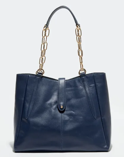 Camille leren schoudertas marineblauw - 34x35x16 cm