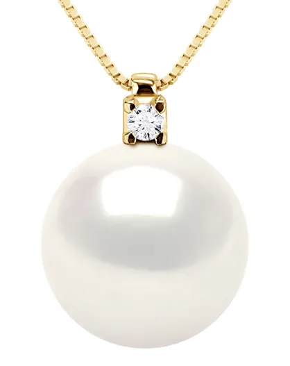 Prestige halsketting in geelgoud, 0.02 ct diamant en natuurlijke witte ronde zoetwaterparel
