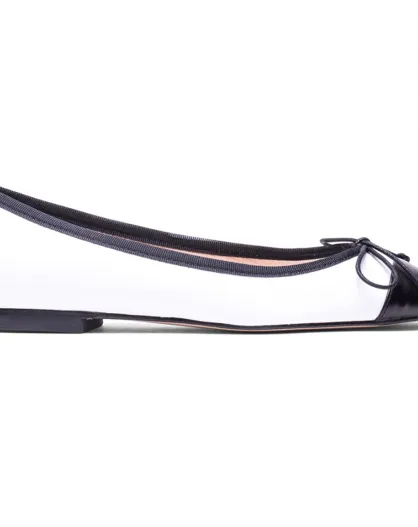 Claude wit/zwarte leren ballerina's - hak van 10 cm