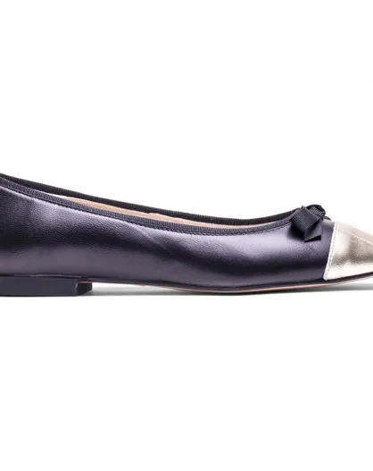 Claude zwart/gouden leren ballerina's - hak van 10 cm