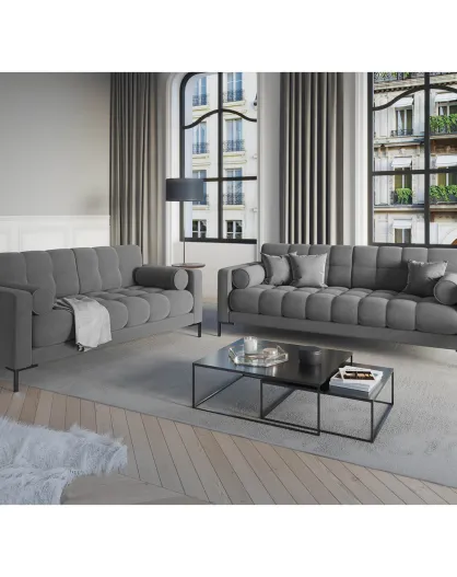 Bali fluwelen bank 4 zits lichtgrijs - 217x92x78 cm