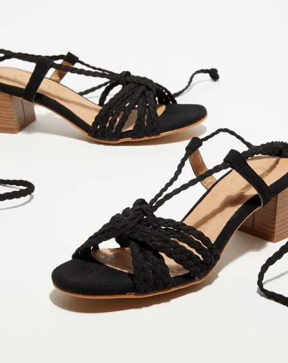 Rosie zwarte fluwelen leren sandalen - hak van 6 cm