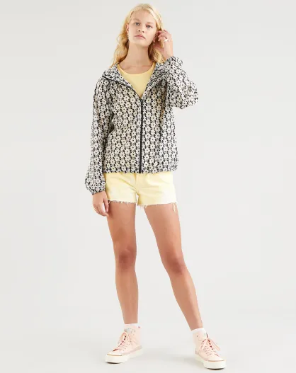 Lina Opvouwbaar windjack met opdruk marineblauw/ecru