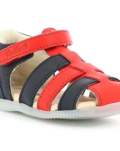 Bigflo-2 marineblauw/rood/witte leren sandalen