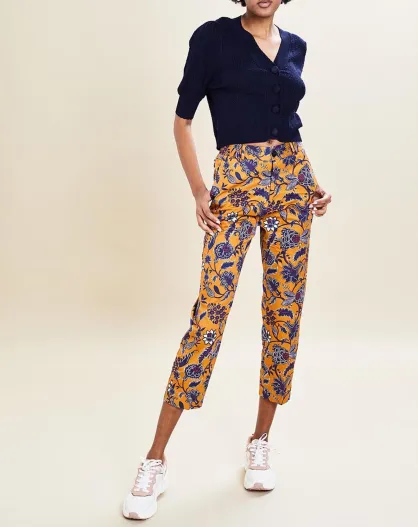 Romeo broek met camel/marineblauwe print