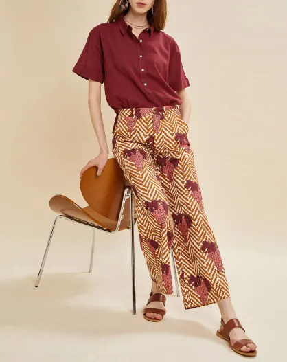 Palau broek met camel/bordeauxrode print