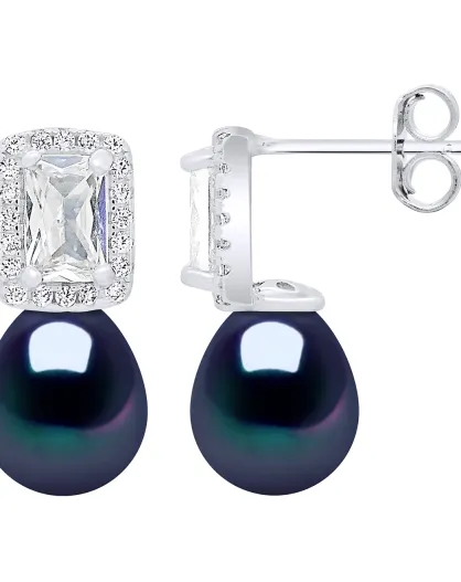 Oorbellen van zilver, zirkonia en zoetwaterparels met zwarte Tahiti-peer