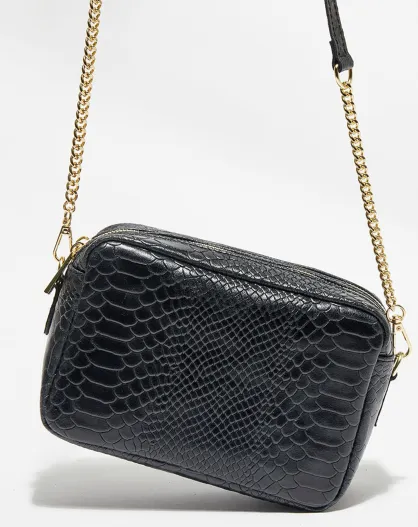 Cleo zwarte leren schoudertas - 13x19x8 cm