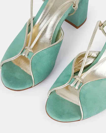Watergroene Ceremony fluwelen lederen sandalen - hak van 8 cm