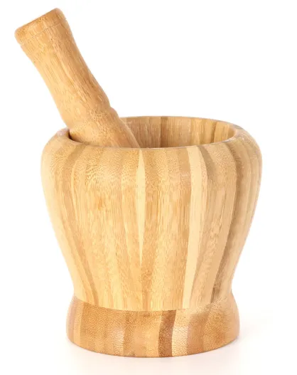 Bruine stamper en vijzel van bamboe - 10,5x16,7 cm