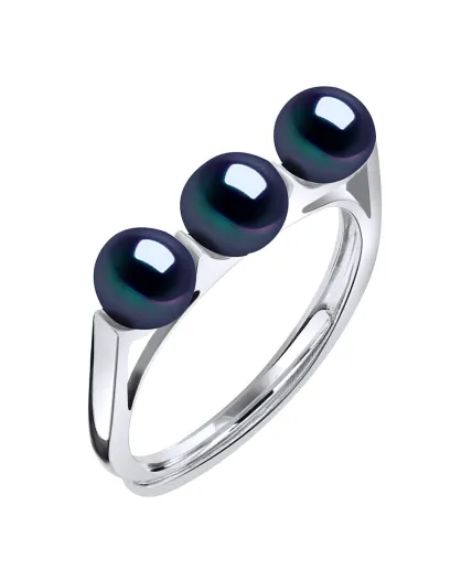 Trilogy verstelbare ring in zilver- en zoetwaterparels met zwarte tahiti-knopen