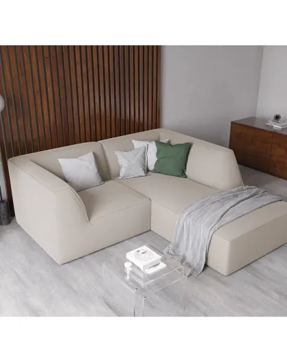 Velours Sao 3-zitsbank beige rechts - 186x180x69 cm