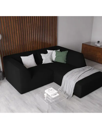 Velours Sao 3-zits zwarte hoekbank rechts - 186x180x69 cm