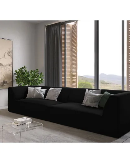 Velours Sao 4-zits zwarte rechte bank - 302x93x69 cm