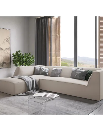Velours Sao 4-zits beige hoekbank links - 273x180x69 cm
