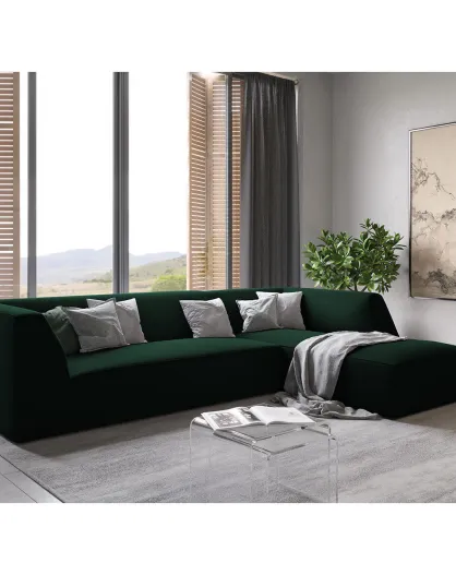 Velours Sao 4-zits hoekbank rechts, flesgroen - 273x180x69 cm