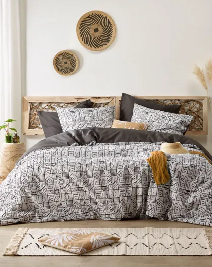 Cuzco dekbedovertrekset van grijs steenperkal katoen
