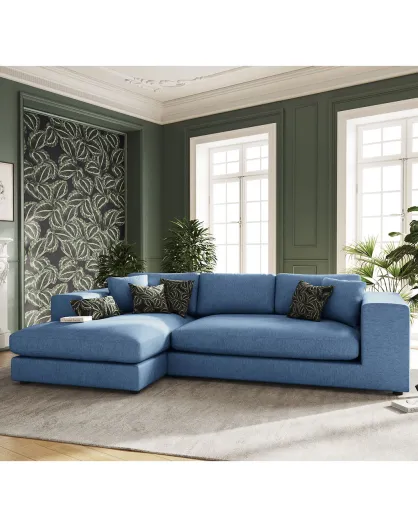 Trendy 5-zits donkerblauwe linkerhoekbank - 282x174x72 cm