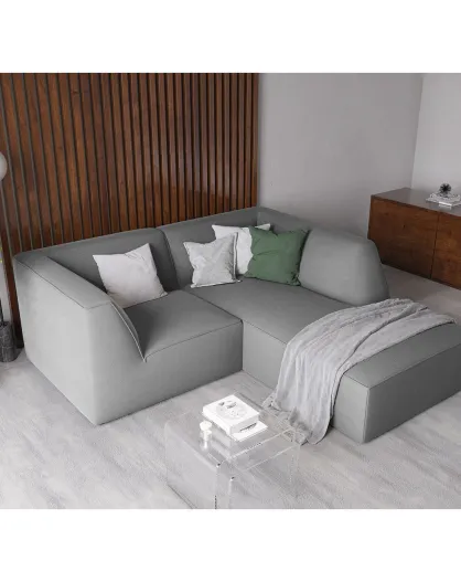 3-zits hoekbank rechts fluweel Sao lichtgrijs - 186x180x69 cm