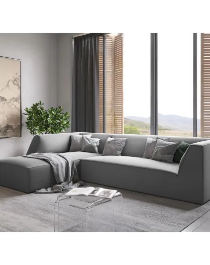 4-zits linkerhoekbank fluweel Sao lichtgrijs - 273x180x69 cm