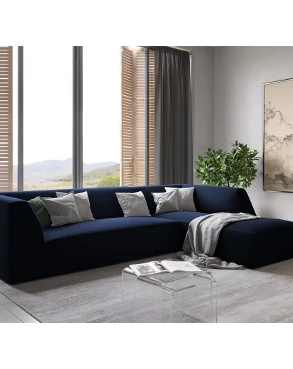 4-zits hoekbank rechts fluweel Sao koningsblauw - 273x180x69 cm
