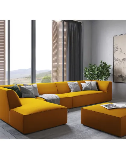 Linker hoekbank 5 zitplaatsen geel Sao fluweel - 366x180x69 cm