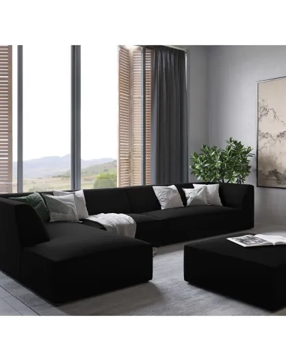 Linker hoekbank 5 zitplaatsen zwart Sao fluweel - 366x180x69 cm