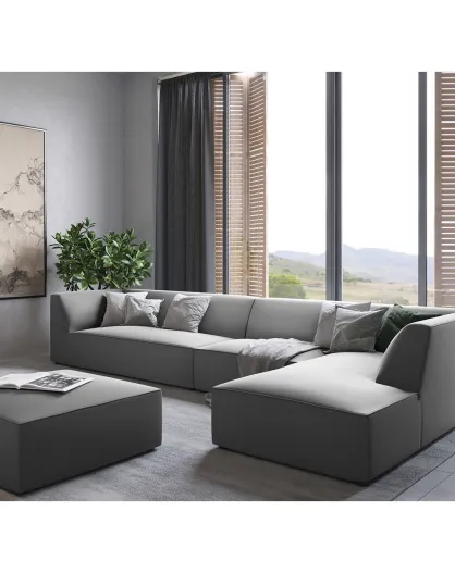 5-zits hoekbank rechts fluweel Sao lichtgrijs - 366x180x69 cm