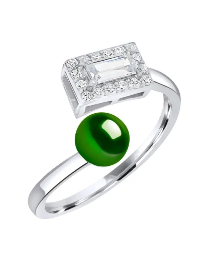 Rechthoekige verstelbare ring in zilver en malachietgroene gekweekte zoetwaterparel