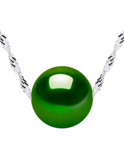 Zilveren solitaire-halsketting en malachietgroene gekweekte zoetwaterparel