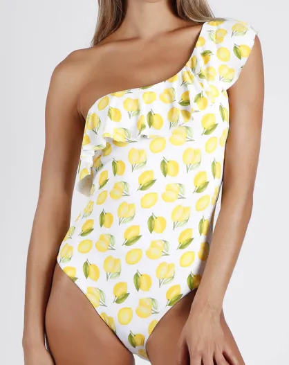 Lemons wit/geel asymmetrisch badpak uit één stuk