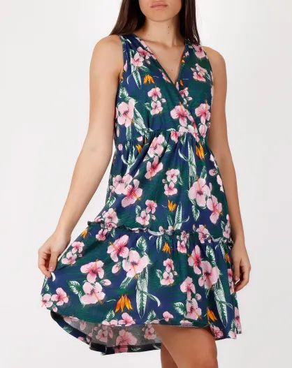 Marineblauwe jurk zonder mouwen Hawaii