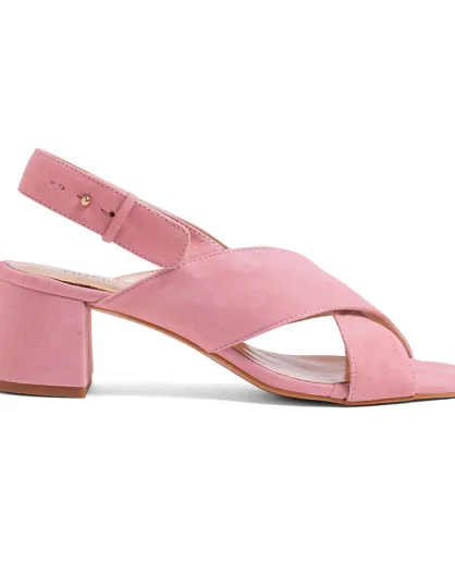 Lorna roze fluwelen leren sandaal - hak 5,5 cm