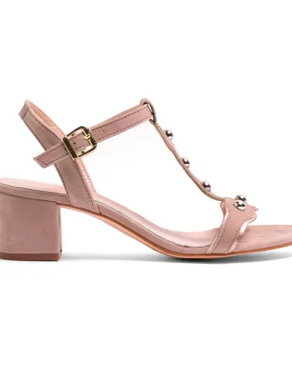 Sandales en Velours de Cuir Naomi rose poudré - Talon 5 cm