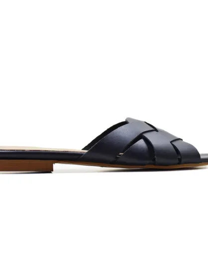Blauwe leren muiltjes Amaranta