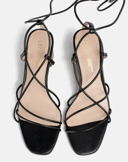 Zwarte boxy-sandalen van leer met hak - hak van 6 cm