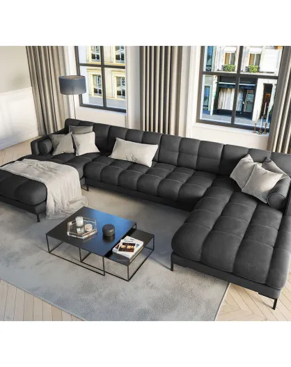 Velvet Bali 7-zits panoramabank donkergrijs - 383x185x75 cm