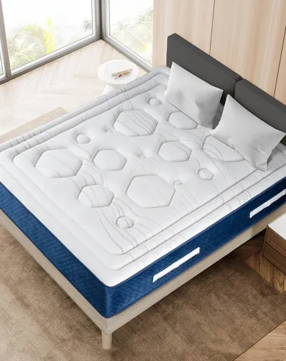 Set springmatras + boxspringset Dolce Vita blauw/wit/hout - 180x200 cm