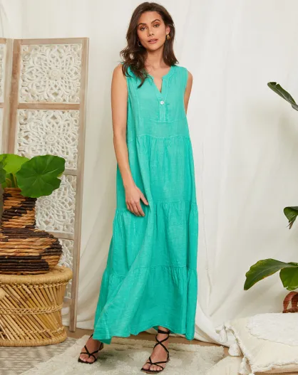 Fanny groene jurk van 100% linnen