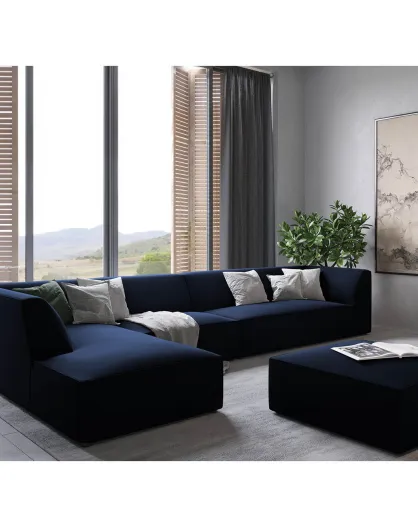 Velours Sao 5-zits hoekbank links koningsblauw - 366x180x69 cm