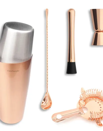 Koperroze cocktailbereidingsset voor barmannen - 5 stuks