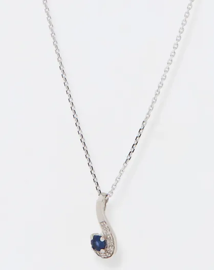 Virgule diamanthanger 0,02 ct saffier 0,16 kt witgoud