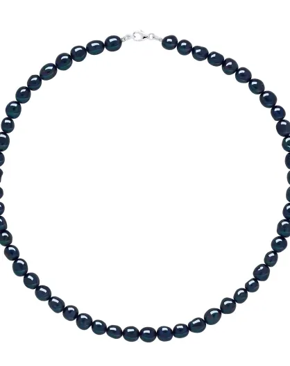 Zwarte ketting met gekweekte parels van Tahiti in zilver en zoet water