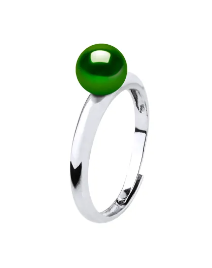 Verstelbare zilveren gebogen ring en malachietgroene gekweekte zoetwaterparel