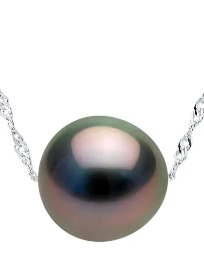 Tahitiaanse ketting met gekweekte parel en zilveren regenboog