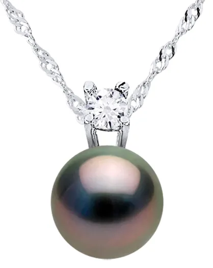 Tahitiaanse ketting met gekweekte parel en zilveren regenboog