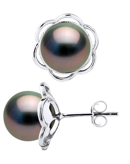 Rainbow Tahitiaanse gekweekte oorbellen met parels en zilveren bloemen