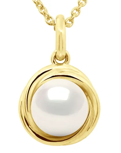 Geelgouden dubbele knoop en parelmoer gekweekte zoetwaterparel, witte parel