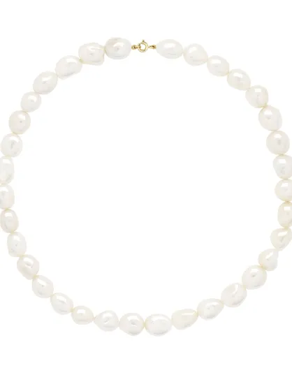 Geelgouden ketting met witte parelmoer gekweekte zoetwaterparels