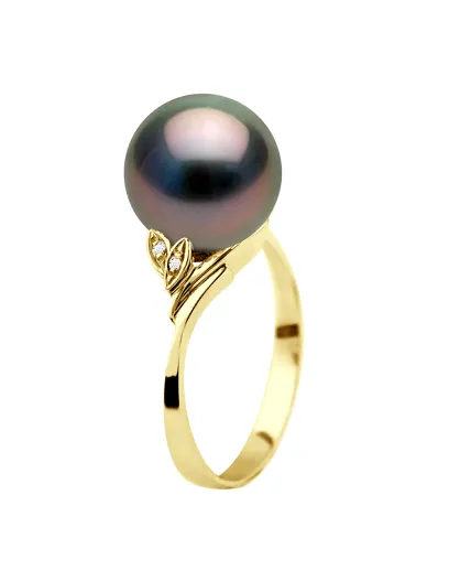 Regenboogring met geelgoud, diamanten en Tahitiaanse gekweekte parels